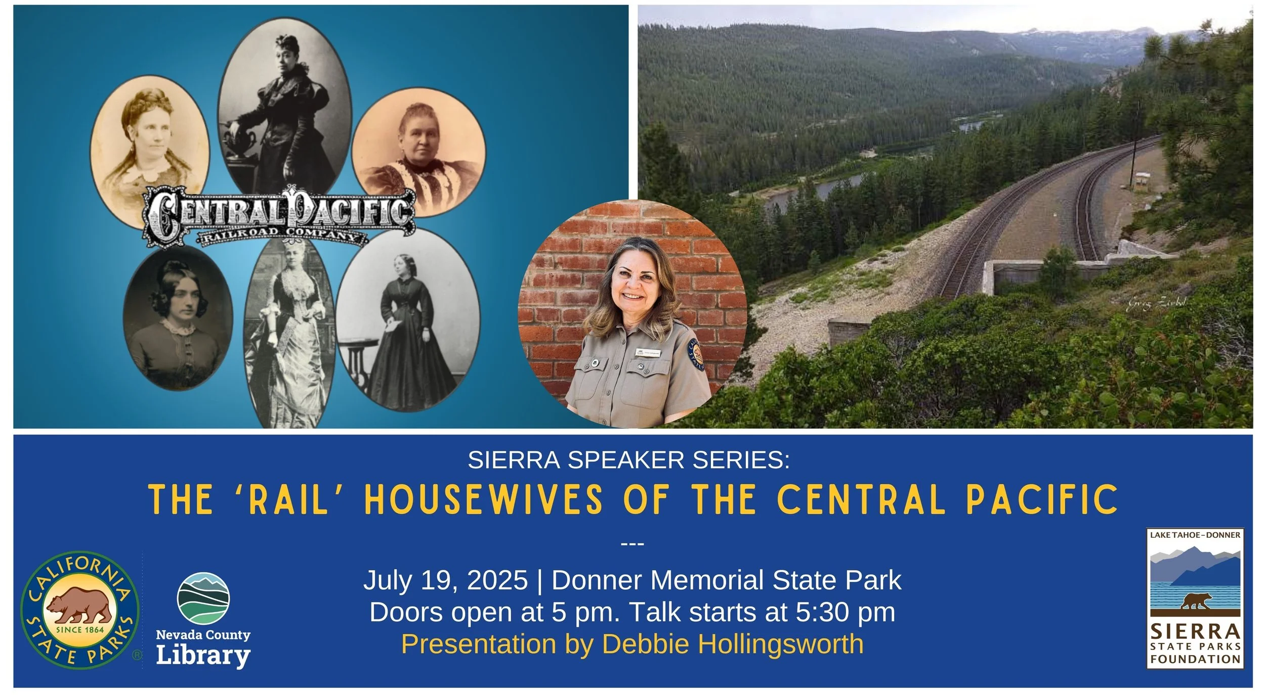 In partnership with California State Parks and the Nevada County Library, the monthly Sierra Speaker Series connects folks to the rich cultural and natural history of the area. Join us at Donner Memorial State Park Visitor Center to learn and engage! Doors open at 5 pm, and the presentation is to follow at 5:30 pm. Admission is a suggested $5 donation. Light refreshments and wine sponsored by Highway 12 Winery will be available. No registration required.